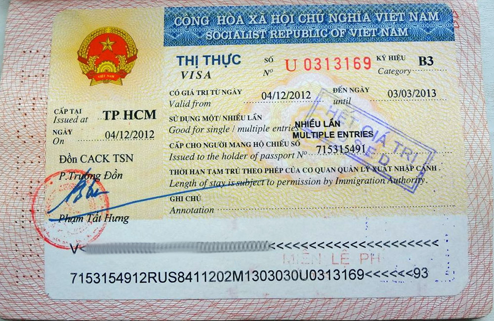 Многократная виза для въезда во Вьетнам, выданная на 3 месяца