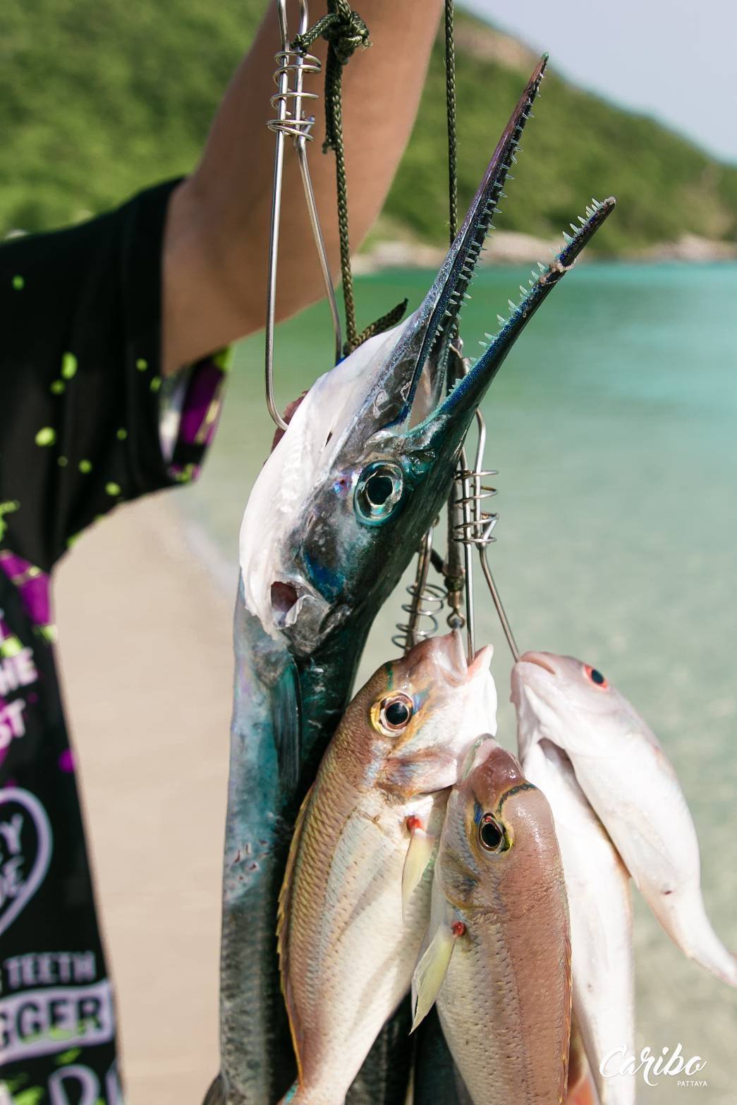 Поездка на море днем – больше развлечение, чем рыбалка. Хотя сопровождающие стремятся обучить и рассказать как можно больше о ловле, туристам хочется просто поплавать в чистой воде возле тропических островов. Кроме того, в программу входит экскурсия, цель которой – рассказать туристам о разнообразии рыб в водах Таиланда.