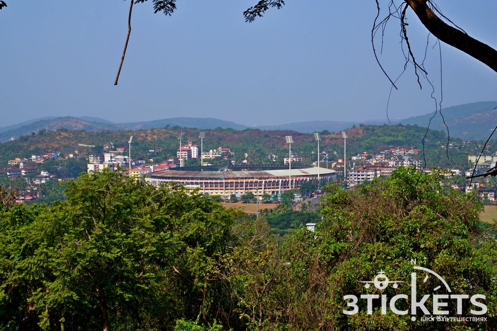 С горы видно большой стадион Маргао Pandit Jawaharlal Nehru Stadium — еще одна достопримечательность. На нем проводятся матчи между футбольным клубом Гоа и клубами других штатов: