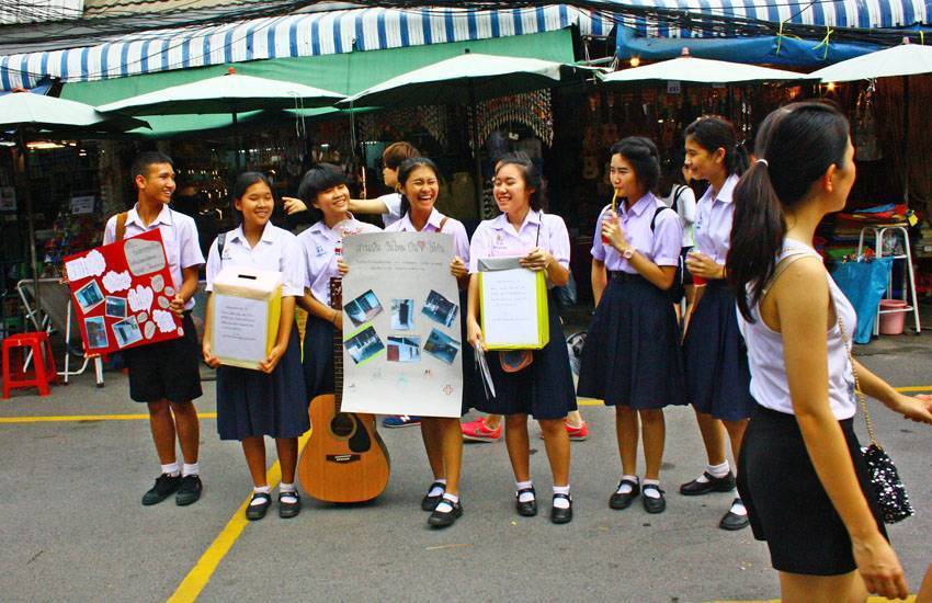На рынке Чатучак в Бангкоке можно найти, чем заняться, и без полного кошелька. Даже просто погулять там и поглазеть на все происходящее – уже развлечение. Например, на такое промо.