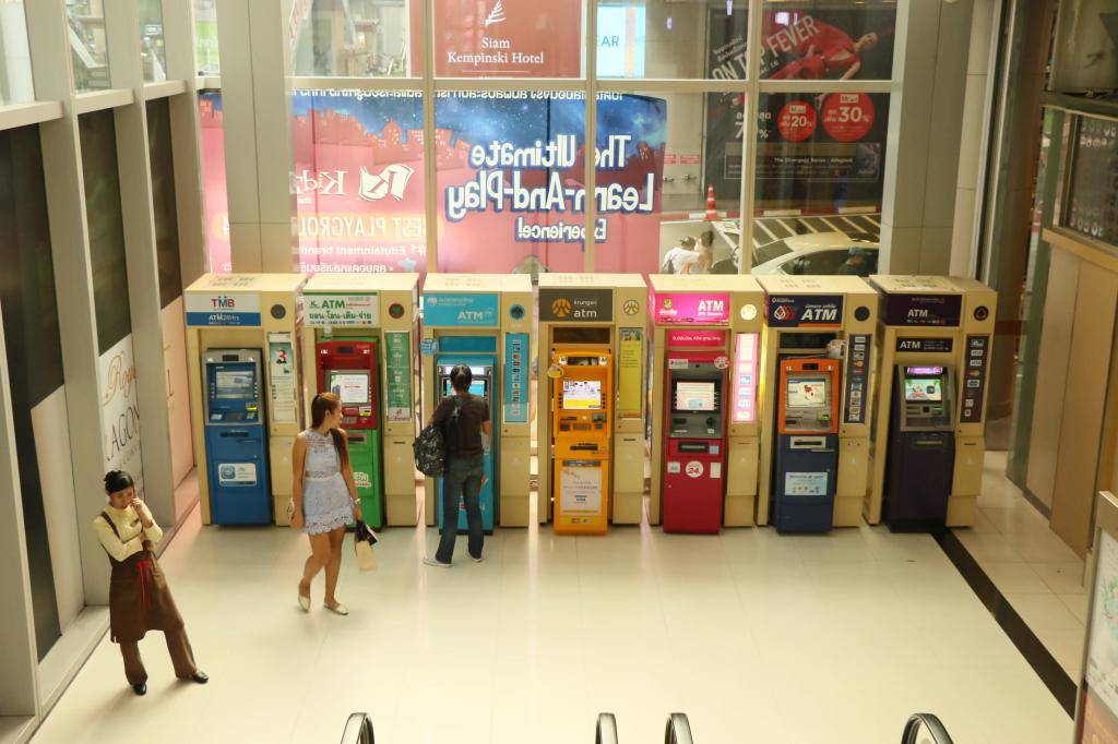 В туристических местах расположено много отделений банков. Самыми крупными и известными в Таиланде являются Бангкок Банк (Bangkok Bank), Крунгтай Банк (Krungthai Bank), Сиам Коммершиал (Siam Commercial Bank) и Касикорн Банк (Kasikorn Bank). Однако, для обмена валют подойдет любой, находящийся поблизости. В каждом супермаркете и торговом центре вы найдете одно или несколько отделений. В них или рядом с ними установлены банкоматы и терминалы самообслуживания. ATM устанавливают на улице, в отделениях банков, в развлекательных центрах, у магазинчиков Family Mart и 7-Eleven.