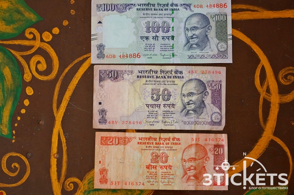 Номиналы банкнот индийской рупии в целом схожи с русскими рублями. Цветовое решение купюр тоже немного напоминает наше. На каждой бумажке изображен Махатма Ганди, а с оборотной стороны — в зависимости от номинала — животные, атрибуты сельского хозяйства и природа. Формально рупия делится еще и на копейки (пайсы), но в обращении мы их не встречали.