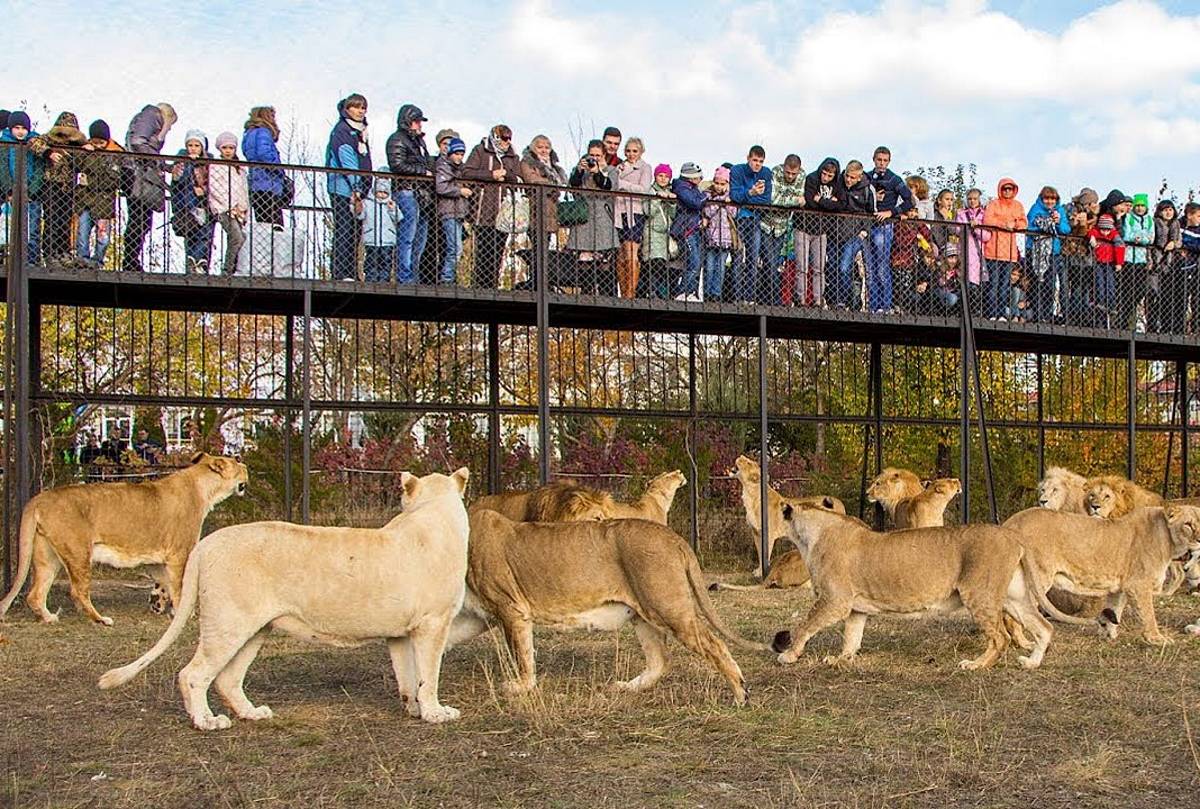Но посетителям не нужно волноваться за свою безопасность. Для прогулки были сделаны специальные смотровые мостики, протяженностью 1 км. Прогуливаясь по ним, у взрослых и детей есть возможность с высоты наблюдать за прайдом. Но нужно понимать, что львы остаются дикими животными, поведение которых зависит от различных факторов.