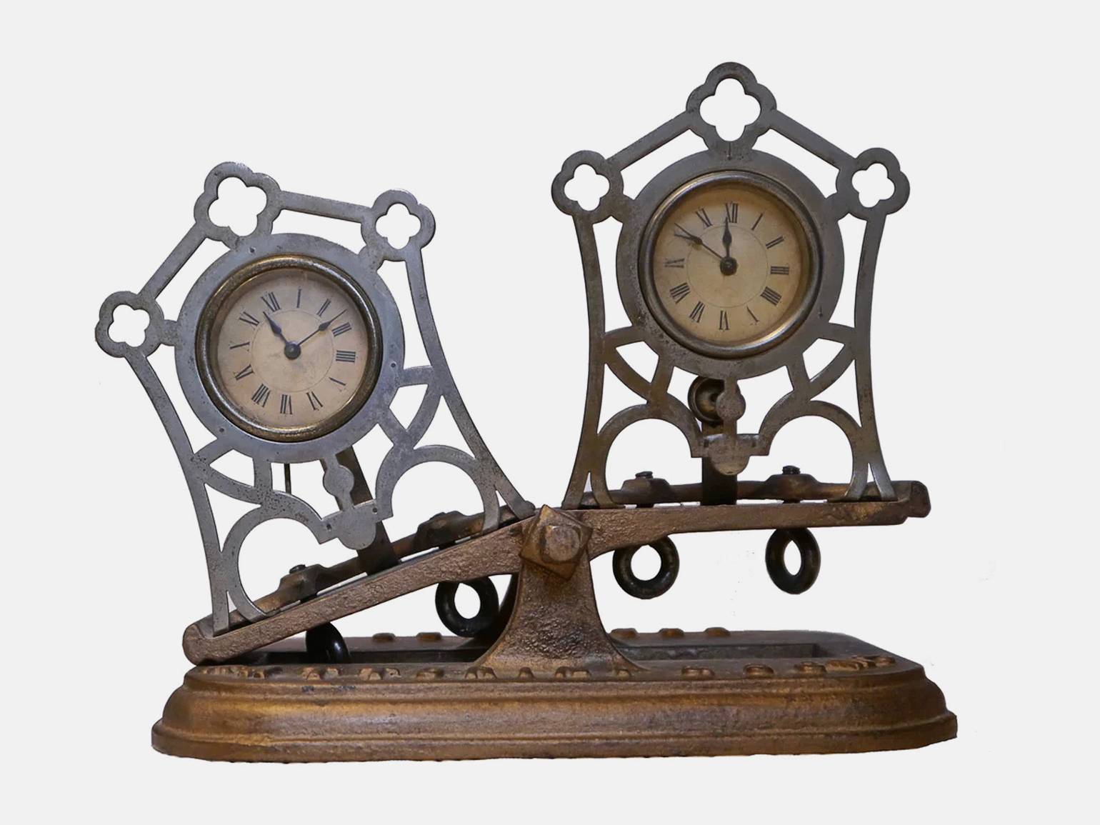 Всё изменилось в 1883 году, когда шахматист-любитель Томас Брайт Уилсон сконструировал первые часы для ограничения времени партии. Это был механизм с парой циферблатов, установленных на разных концах балансира. На часах Брайта ещё не было кнопок и флажков — флажок, сигнализирующий о скором окончании времени, появится только в 1899 году.