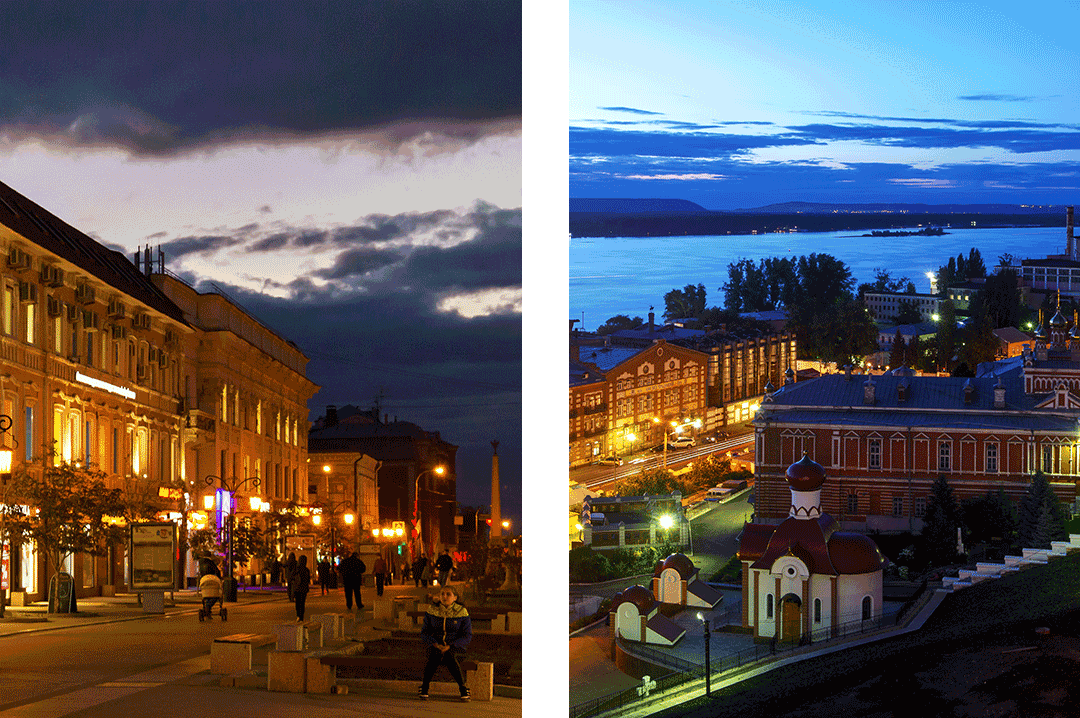 Самара — один из российских центров кайтинга. Можно прокатиться на теплоходе в увлекательный речной круиз по Волге. Вечером, когда зажигаются фонари, набережная привлекает своей таинственностью. Это прекрасное место и для прогулок с девушкой, и для романтической фотосессии.