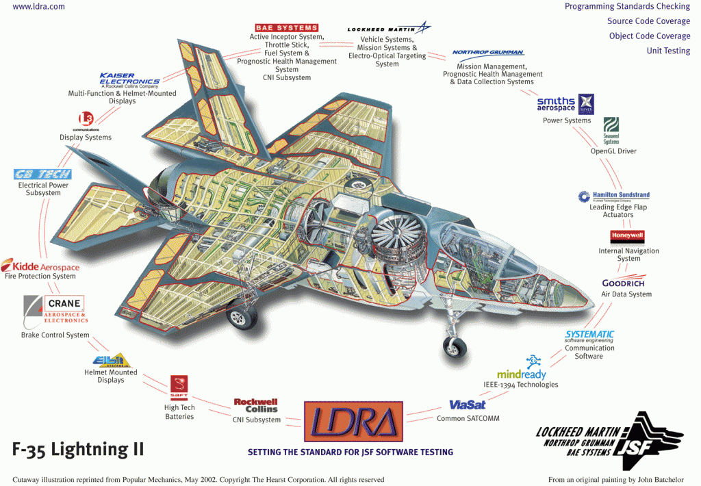 Примерная схема общих взаимозаменяемых деталей F-35 (A/B/C).