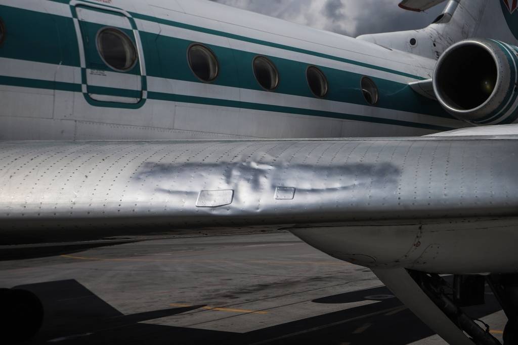 Но долго грустить экипажу не дали. Встречающие уже успели осмотреть самолет и подошли к экипажу с вопросами. И один из них о вмятине на крыле, по форме напоминающий птицу с расправленными крыльями.