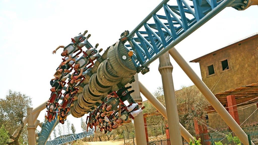 Furius Baco – развлечение из серии все тех же американских горок, которое входит в десятку самых скоростных. Всего за каких-то 3,5 секунды паровозик способен развить стремительность порядка 135 км/ч. Показатель быстродействия этой чудо-машины достигает отметки в 10,7 м/с, что превышает параметр ускорения свободного падения.