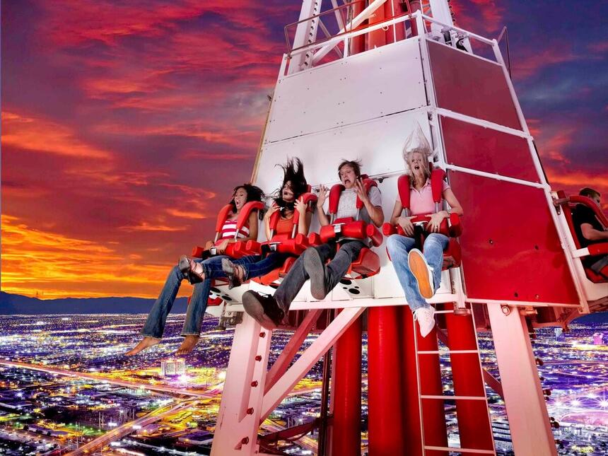На безумную карусель можно попасть в Лас-Вегасе в отеле Stratosphere Las Vegas.