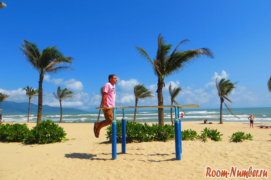 Пляж хорош еще и тем, что вдоль него тянется широкая набережная. Приятное место для прогулок или для утреннего бега. Мы тут с удовольствием гуляем каждый день. Набережная в 3 раза шире, чем в Нячанге. Видимо, задел на будущее, когда в Да Нанг будут продавать туры и отдыхающих здесь станет гораздо больше. А пока набережная выглядит пустынно.