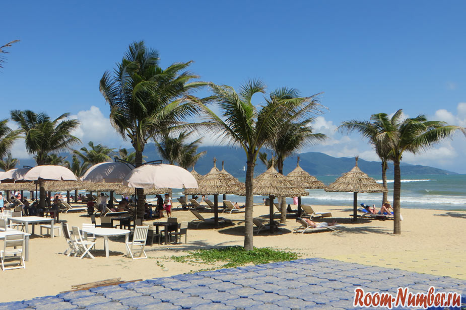 На пляже Микхе есть лежаки и стульчики, как на . Цены вполне доступные — от 20 до 40 донгов (1-2$) с человека. Также можно разместиться на своих полотенцах.