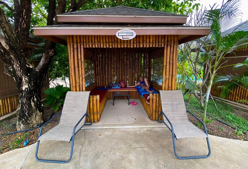Для любителей уединенного отдыха, можно за дополнительную плату арендовать беседку (от 700 бат до 2 тыс. бат, в зависимости от количества человек), плюс, всего за 300 бат можно апгрейдить обслуживание в беседке до вип класса (вам зашторят шторы, включат вентилятор, ну и добавят еще несколько дополнительных бонусов). И кстати, для обладателей вип беседки полотенце бесплатно (так его цена 100 бат).