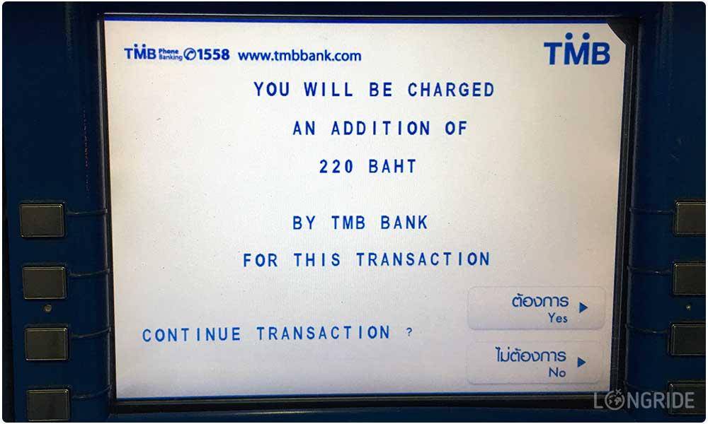 При снятии наличных денег с карты предусмотрена комиссия в размере 220 бат. Она одинакова во всех основных банках Таиланда: