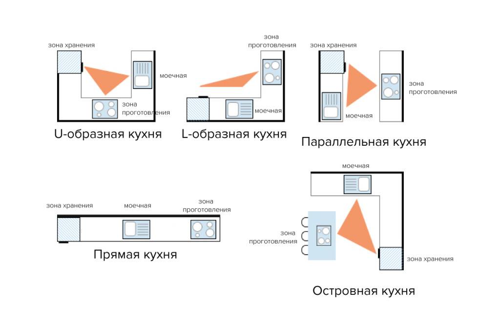 По этому маршруту движется продукт от сырого состояния до готовки. Если поставить холодильник между мойкой и плитой, возникнут усталость, раздражение и хаос на кухне.