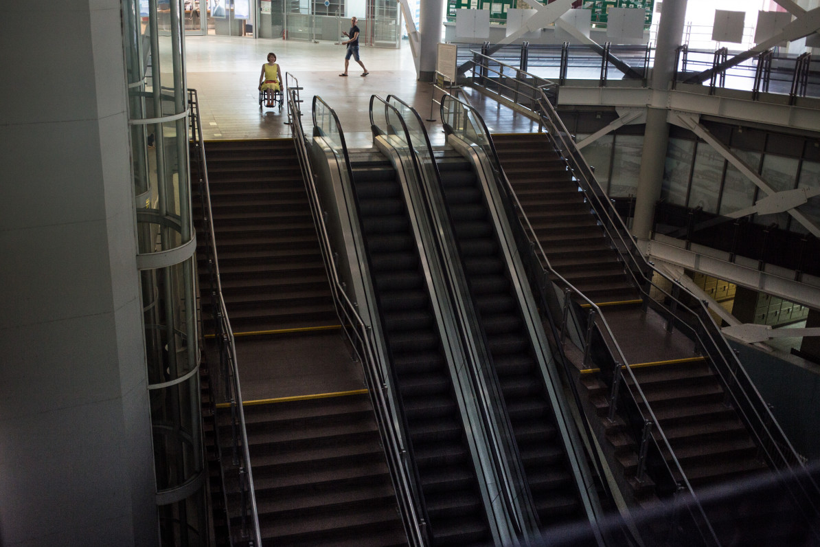 Катя отправилась на цокольный этаж, зная, что там инфраструктура тоже налажена. Но сюрприз поджидал и там. Нет, туалет вполне себе работал, а вот лифт – нет. И если посетитель без проблем с опорно-двигательным аппаратом, не желающий долго идти по спиралевидному подъему, может воспользоваться эскалатором, то человеку на коляске придется долго и мучительно подниматься в горку самостоятельно – сотрудников вокзала на этом этаже почти нет. Вот именно так всё и получилось в тот день…