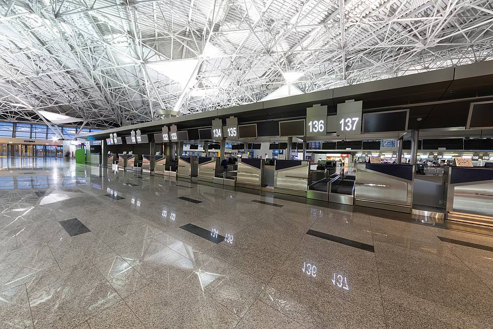 При входе в зал аэропорта поражают огромные и светлые залы.