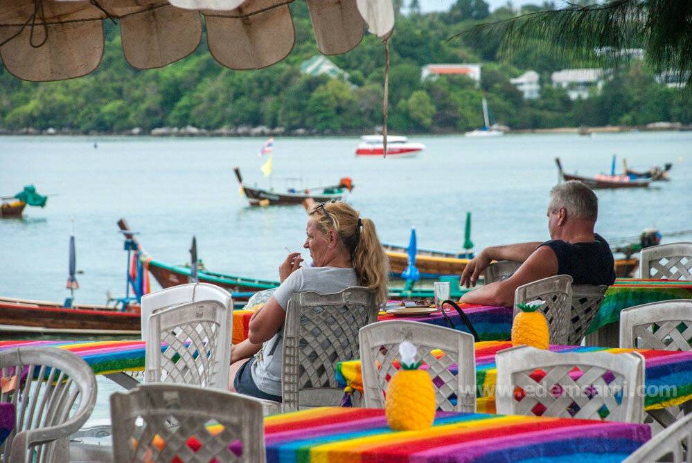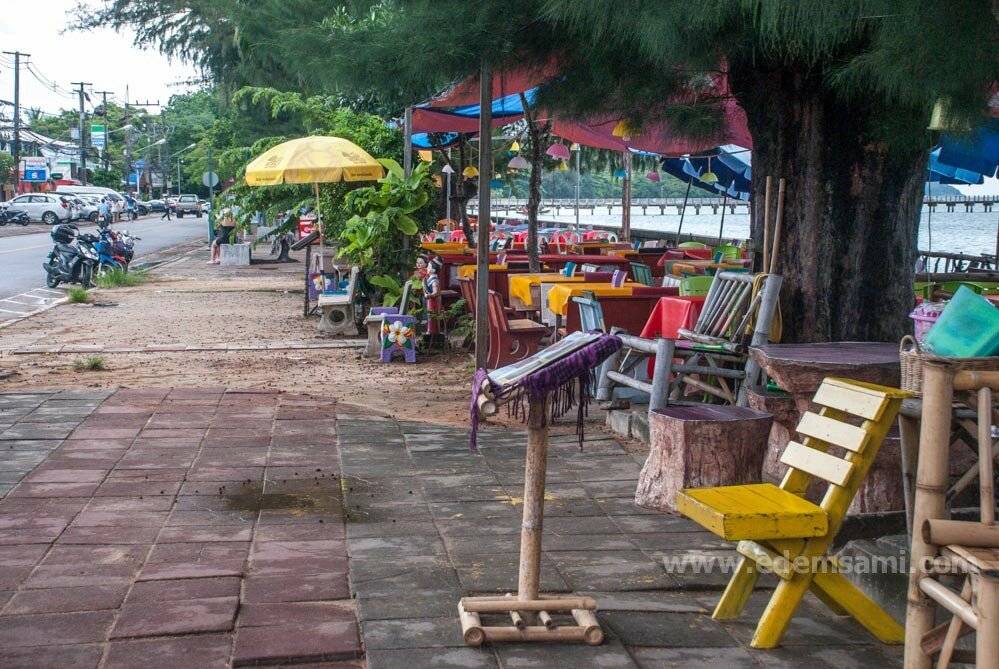 Раваи – совершенно потрясное место для обеда или ужина тай-стайл с видом на море: живописно, вкусно, тенисто и вполне себе гуманный ценник. Для особо привередливых особ есть несколько более приличных кафешек, а не просто столиков у дороги.