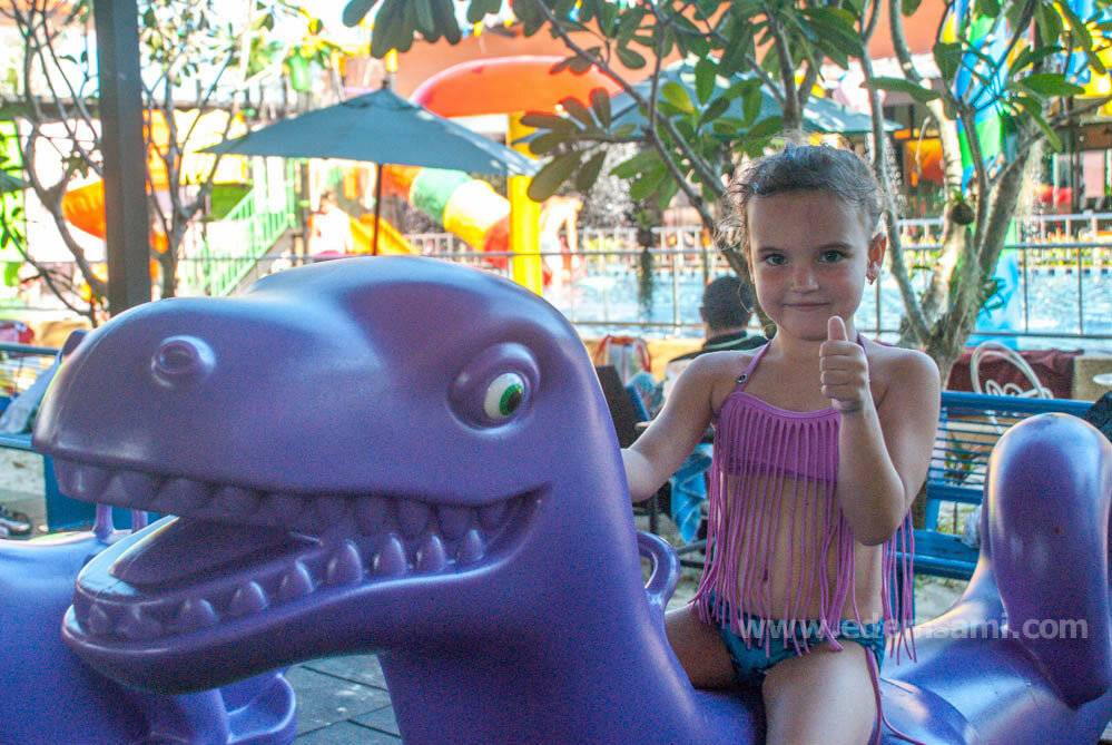 Зато на Раваи есть супер-хит в плане детских развлечений: Раваи Парк. Я уже сетовала, что в Паттайе до подобного никто не додумался – почему??? Небольшой детский аквапарк, зона с детским городком и кондиционируемая игровая; замечательное кафе без претензий, но очень достойное; беседки по всей территории и вменяемый ценник. Жаль, что мы его открыли для себя уже перед самым отъездом.