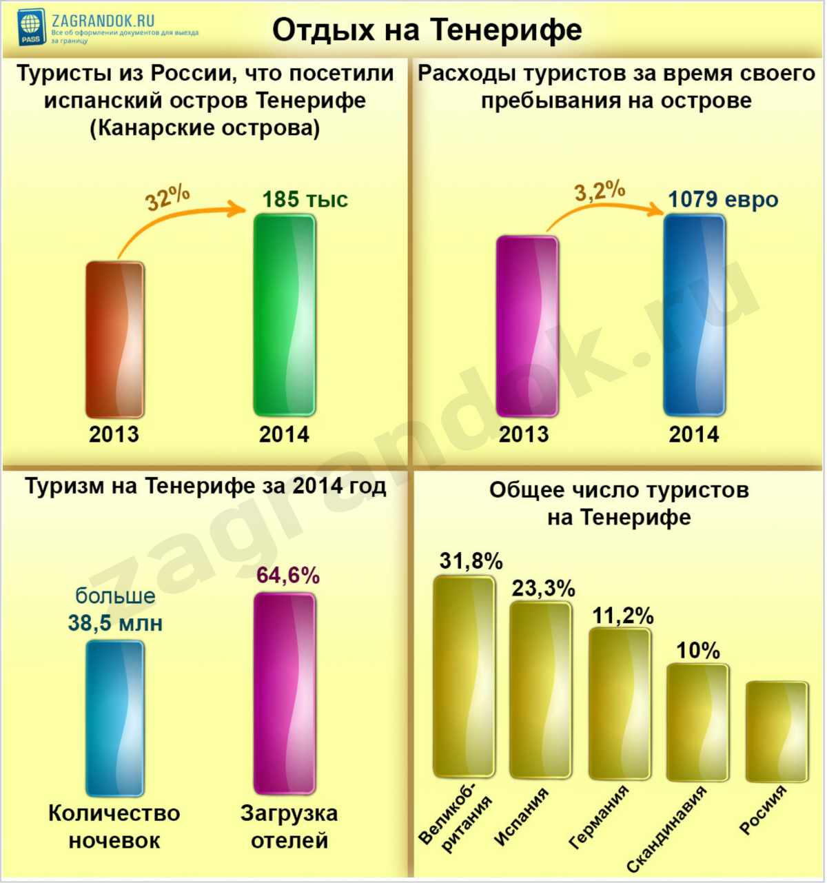Тенерифе — сказочный курорт, в котором можно погрузиться в великолепный отдых, полежать на чистом песке и насладиться теплой водой Атлантического океана. Люди, которые собираются на Канарские острова, гарантированно получат массу удовольствия