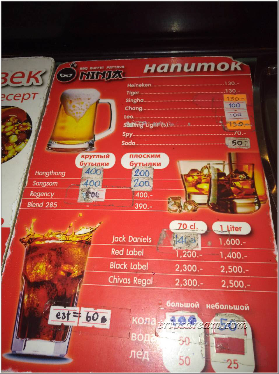 Не стоит забывать про напитки. Без них будет трудно обойтись, вот какие здесь цены: