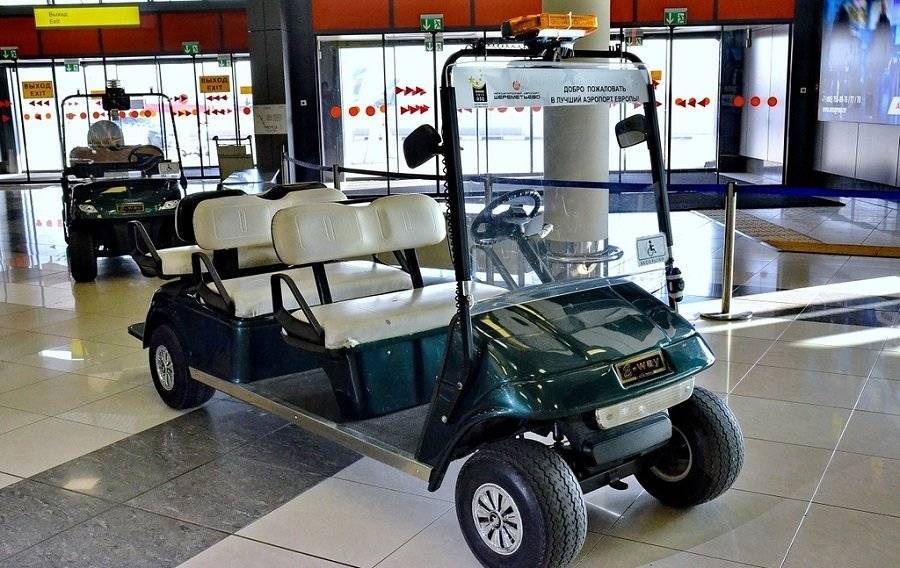 Электрическое такси курсирует по всей территории Шереметьево. Безопасное, бесшумное, экологически чистое, вместительное, грузоподъемное – такими словами можно охарактеризовать внутритерминальное такси. Это маневренная машинка может одновременно перевозить до 6 человек вместе с багажом. За безопасность можно не волноваться, водитель даже если захочет, не сможет превысить скорость 5 километров в час.