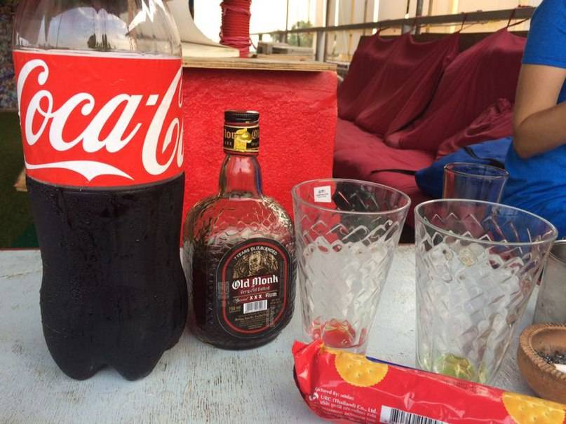 - Дешевый алкоголь — бутылка виски 0,7 л. стоит от 130 р. Пьют тут много. Почему так дешево? На таких бутылках написано «только для продажи на ГОА». Как правило, бутылка пластмассовая с кривонаклееной этикеткой. А пьётся — противно. В Мумбаи такой же алкоголь продаётся только в стекле и цена от 500 р., а по вкусу… есть разница.