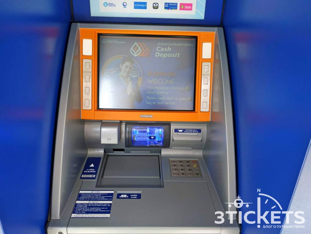 Тайские устройства самообслуживания АТМ выдают только местную валюту — баты. Конвертация производится автоматически согласно курсу Сбера либо платежной системы. Аппараты устанавливаются в крупных торговых точках, на улицах. Второй вариант позволяет снимать деньги круглосуточно — уличные банкоматы доступны всегда.