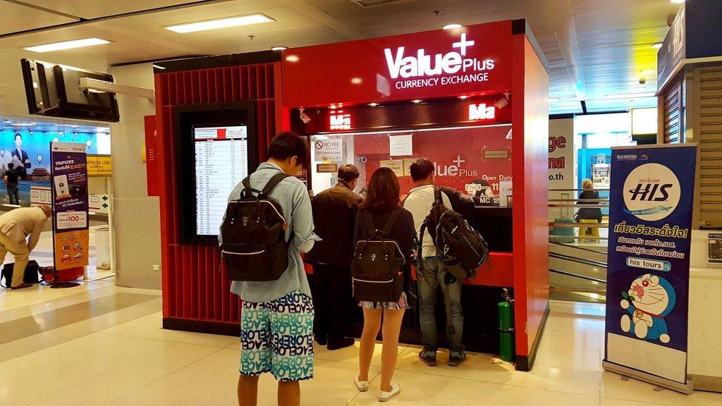 Если вы прилетаете в международный аэропорт Бангкока Суварнабхуми, то там есть обменник с очень выгодным курсом, даже выше, чем в некоторых местах в городе. Можете смело менять в нем деньги на первое время. Этот обменный пункт находится на самом нижнем уровне аэропорта возле турникетов на вход в аэропортовое метро Airport Rail Link (ARL).