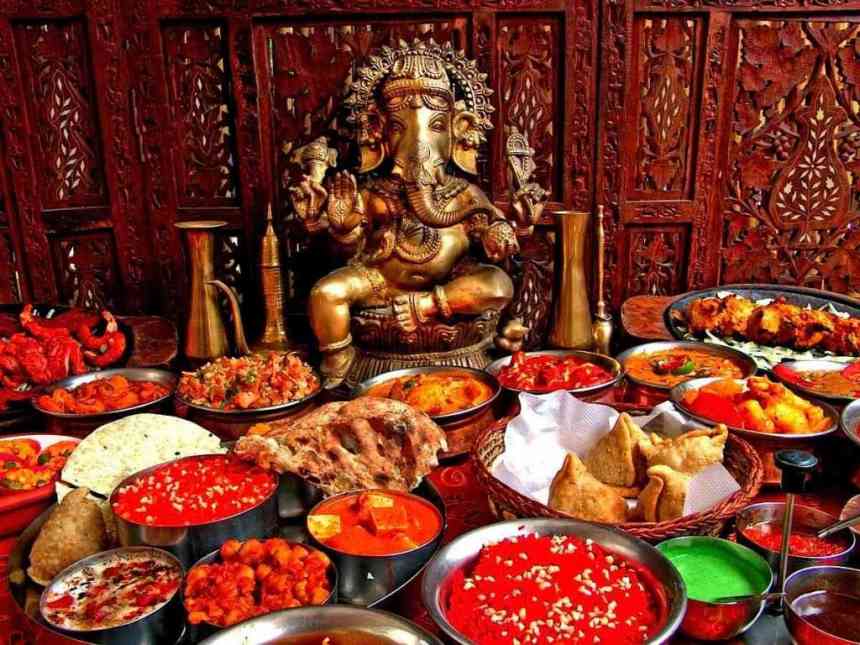 Индийская кухня, в большинстве своем, основывалась на растительных продуктах, в чем главную роль сыграл климат страны (на некоторых территориях за один год удается собрать до 3 урожаев овощей). Мясо говядины, в большинстве штатов, под запретом, так как корова в Индии является священным животным.