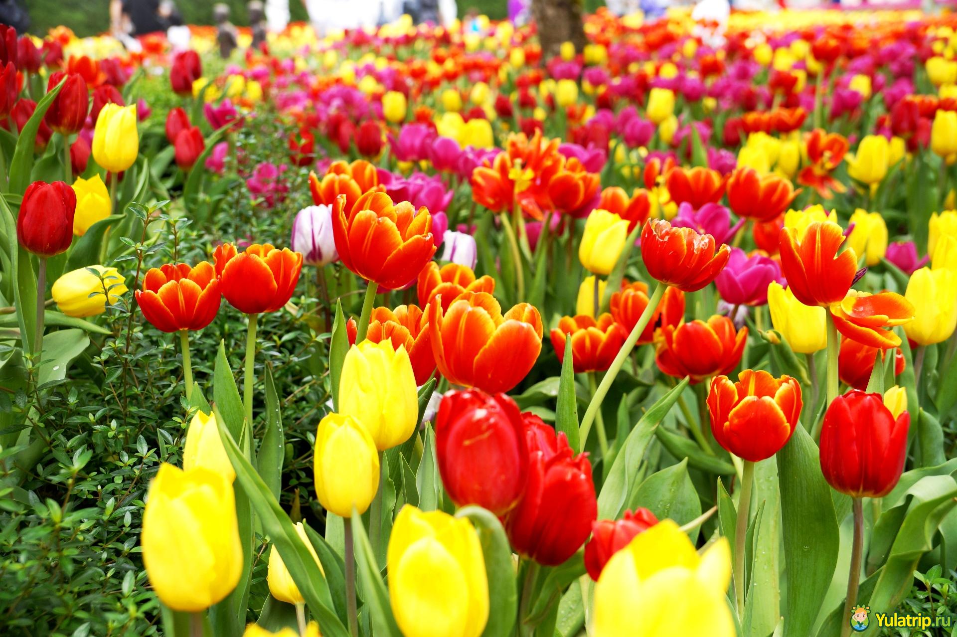 Множество тюльпанов самых различных цветов в больших количествах окружали нас. Глазам было очень ярко смотреть, везде куда ни глянь были они -цветы!
