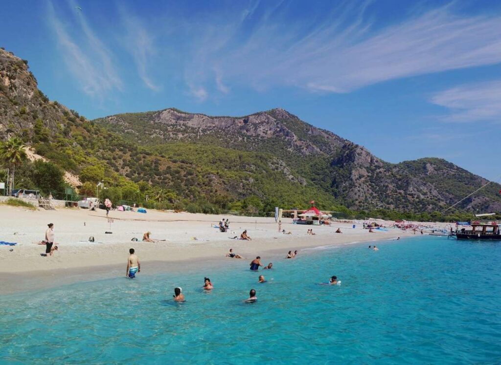Ближе к Фетхие, всего в 9 км, находится великолепный пляж Олюдениз, расположенный в бухте и окружённый горами. С морем он соединяется посредством узкого канала. Благодаря своему уникальному и удачному природному расположению, здесь совсем не бывает волн: море в любое время остаётся тихим. В выходные дни здесь достаточно людно, поэтому любителям тишины сюда нужно приезжать в будние дни. Парапланеристы облюбовали поблизости гору Бабадак высотой почти 2 км. С высоты можно увидеть даже греческий остров Родос. Чтобы подняться в гору, нужно преодолеть расстояние, которое занимает около 45 минут езды на автомобиле.