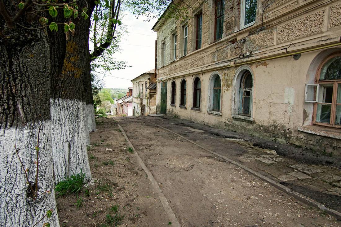 2. Спуститься по Аптекарскому переулку (сразу за мостом налево) – столь редкой для российской провинции улице-лестнице. Да, и лестница, и дома на улице сильно обветшали, но это не умаляет достоинств места.Кстати, Аптекарский переулок мог бы войти в перечень архитектурных памятников, там расположены три дома с единым фасадом – модное решение 18-19 веков.