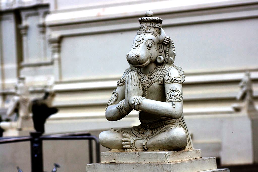 - Нанди (бык), вырезанный из черного камня у входа в храм, символизирует начало божественного места и области храма.