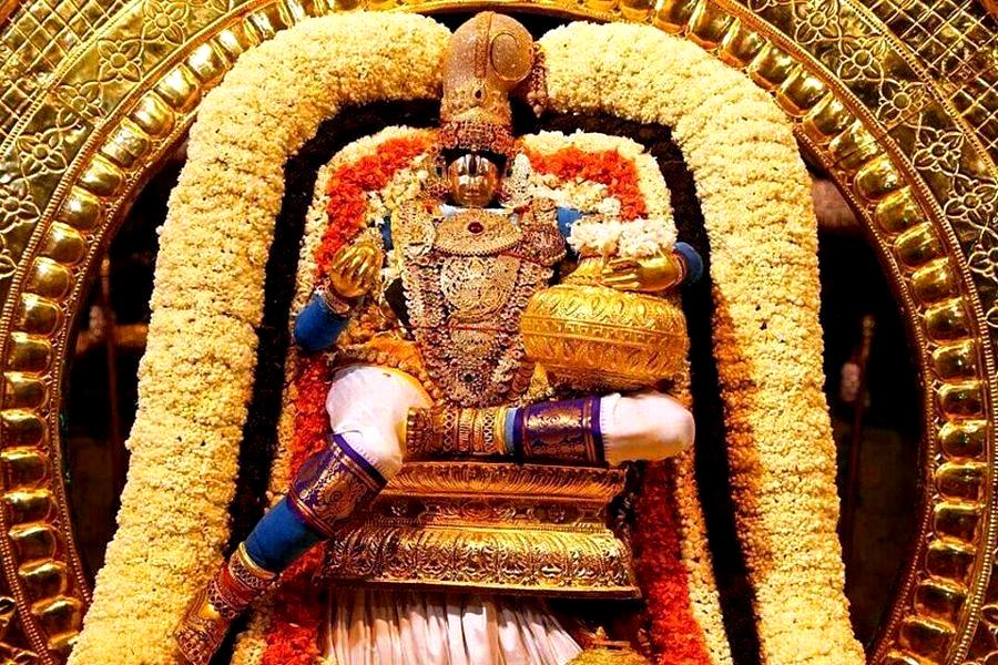Дверь, ведущая в зал, где установлена статуя Вишну-Венкатешвары, покрыта листовым золотом и носит называние «Золотые ворота». Святилище, или «Гарба Грихам» имеет сравнительно небольшие размеры, из-за чего здесь по причине большого числа паломников всегда бывает теснота.