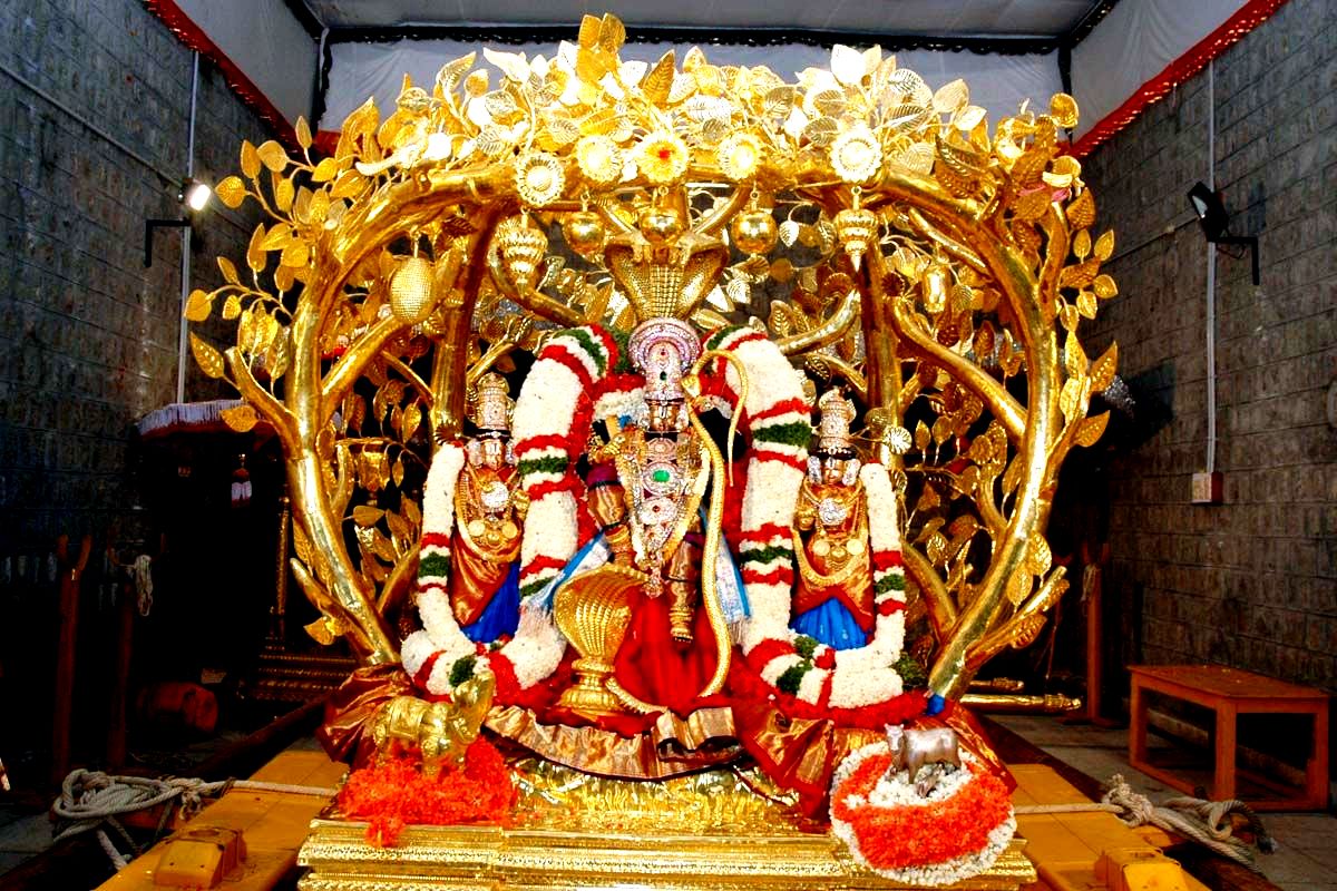 Изысканность архитектуры, необыкновенная роскошь, пышность украшений — все это производит неотразимое впечатление на посетителей. Купол центрального святилища увенчивает башня-вимана, покрытая чистым золотом, носящая название «Ананда Нилайя Виманам» — «обитель счастья». Ее высота составляет 14,5 м.
