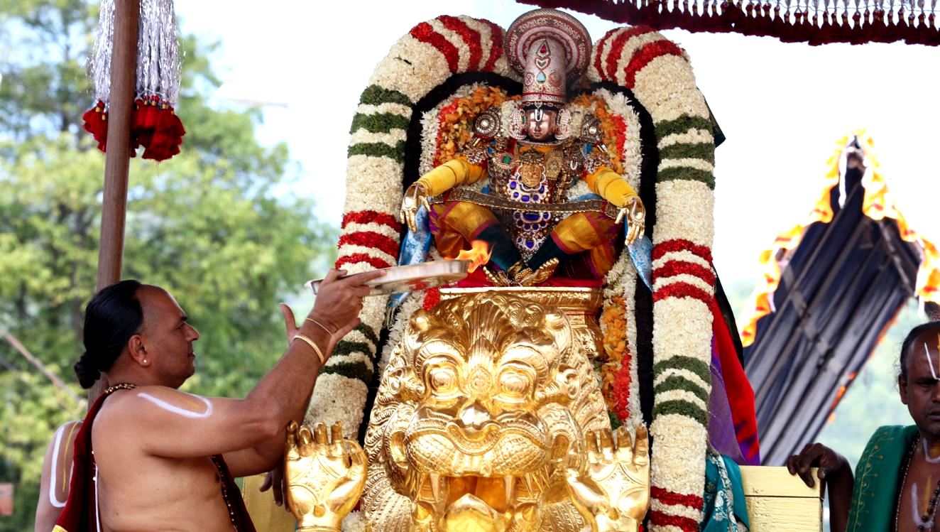 Вершина празднества — «Гаруда Утсавам», пятый день, когда устраивается шествие за большой храмовой колесницей. Это огромное, величиной с четырехэтажный дом сооружение на гигантских деревянных колесах, богато украшенное резьбой. Вес колесницы составляет около 300 тонн.