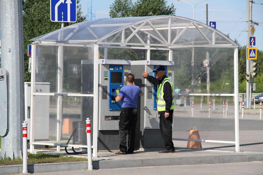 - Когда вы подойдёте к терминалу, вы увидите в нём два приемника: для денег и для талона, который вам выдали при въезде на парковку. Вложите талон и повторяйте действия, указанные в появившихся подсказках.