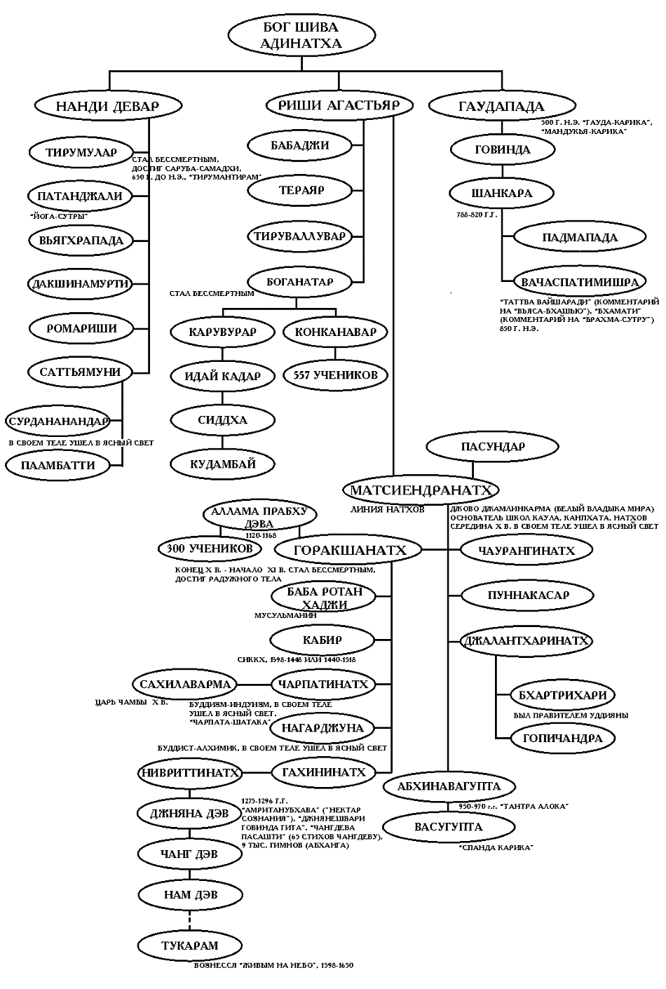 В тантрических культах сила йогов также даруется божеством или передается от наставника к ученику, но сейчас уже не осталось просветленных. Даже святые довольствуются малыми сиддхами ― частичным проявлением ашта-сиддх. Величайшие чудеса йогов Индия помнит только в виде легенд и преданий. Из реальных личностей сиддхами считаются немногие: основатель крийя-йоги Махаватар Бабаджи, автор «Йога-сутры» Махариши Патанаджали, тамильский поэт-мистик Риши Тирумулар и лидер тантрического ордена даршани Горакшанатх.