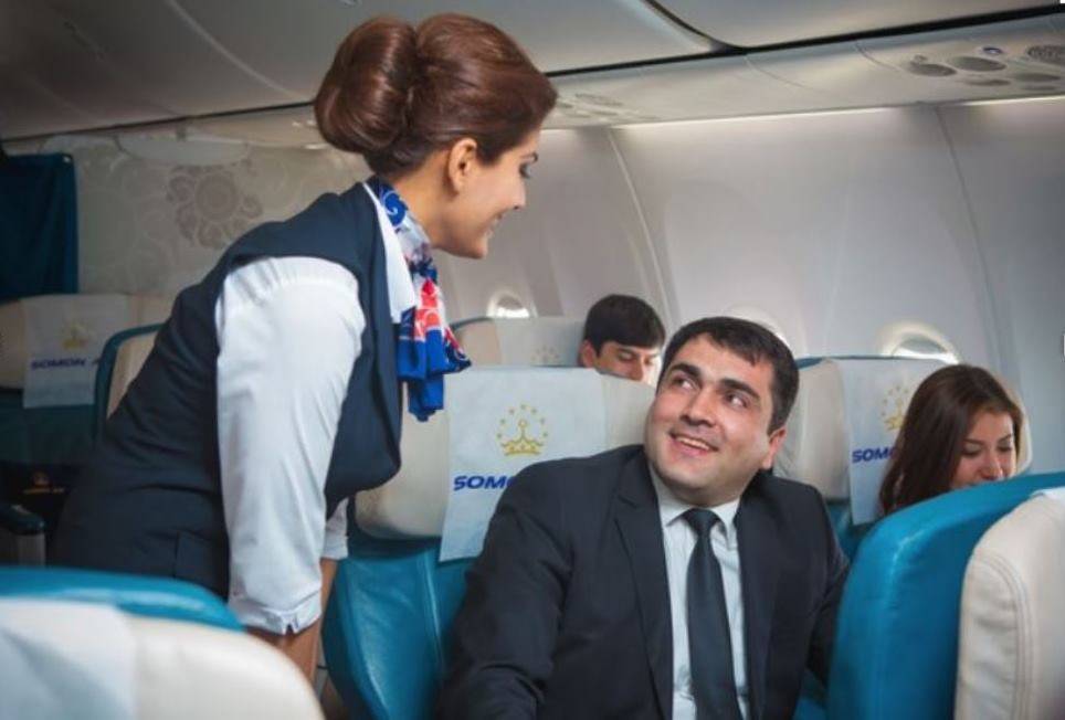 Итак, в должностные обязанности стюардесс таджикских авиалиний входит обслуживание пассажиров и обеспечение порядка и безопасности на борту самолета.
