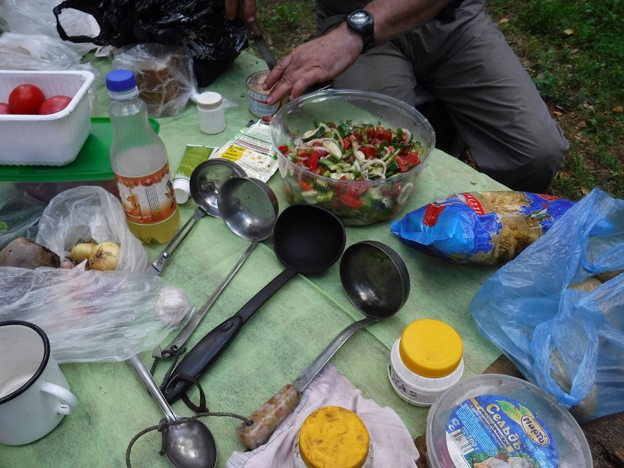 А питались мы очень хорошо. Вячеслав сказал, что дома его так не кормят. Надеюсь, его жена не прочитает эти строки. Почему-то у нас на троих оказалось четыре половника. Первозданная природа нагуливает аппетит!