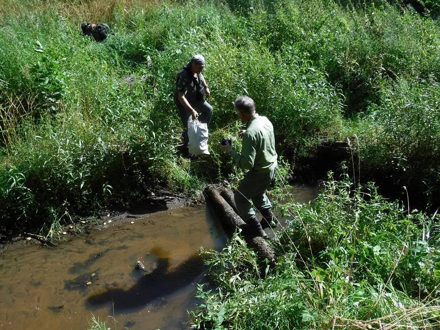 Дорога закончилась, когда мы подошли к ручью – притоку речки Осинка. На ручье хозяйничают бобры – понастроили плотин. Здесь мы долго искали переправу – берега крутые, трава в рост человека. Слава два раза проваливался в бобровые норы, «чуть сознание не потерял». Впрочем, думаю, что он, как всегда, шутил.