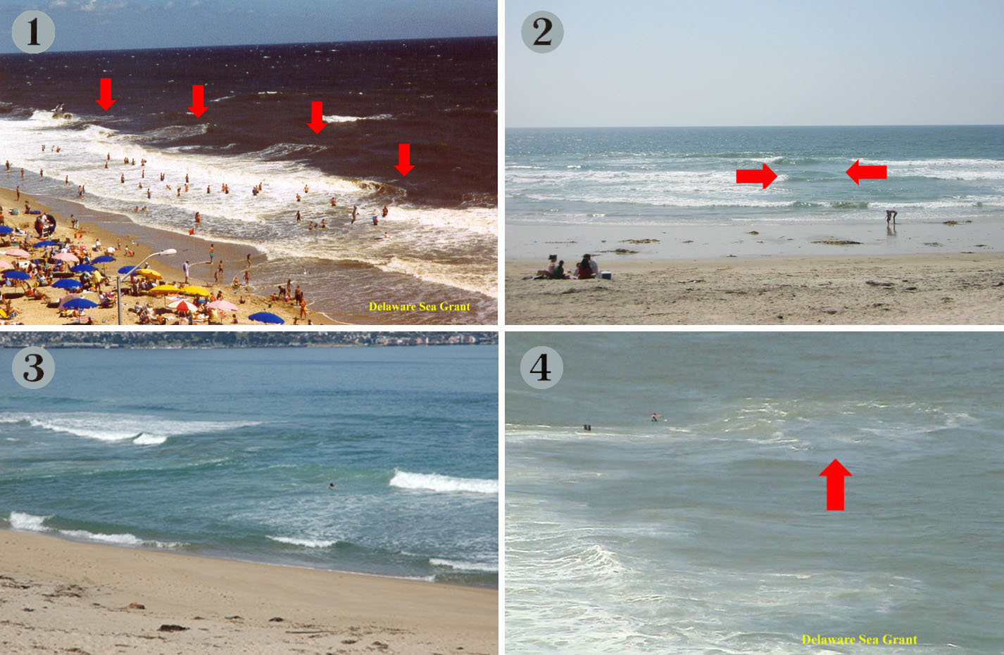 Определить РИП сложно для обычного человека. Необходимо отмечать различие в оттенках цвета, движение воды, входящей в линию волн, разрывы в волнах или изменения их формы. Подсказками могут служить: