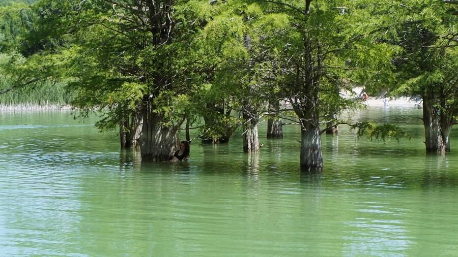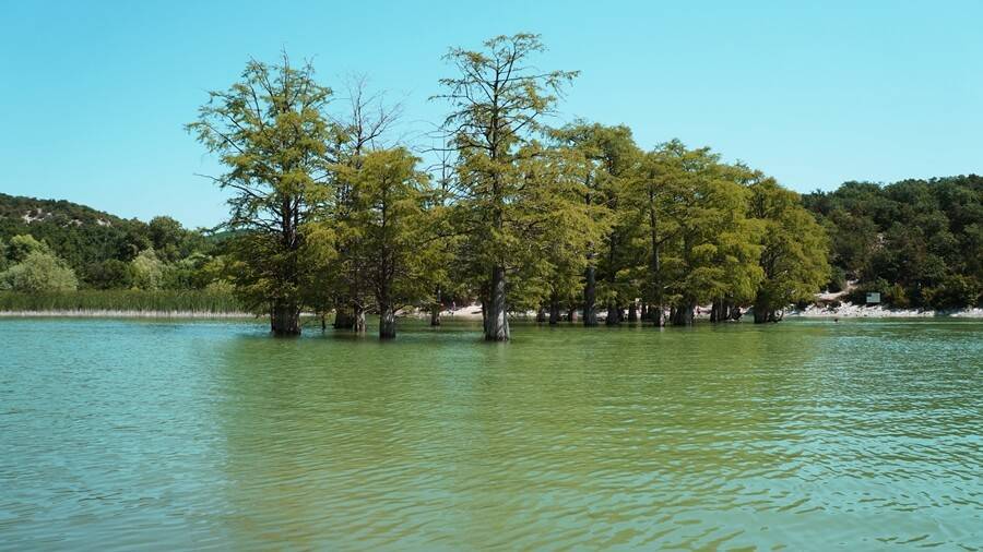 - Озеро в зимнее время почти полностью пересыхает, до кипарисов можно с легкостью добраться по берегу, в летнее время глубина возле деревьев достигает 10 метров!