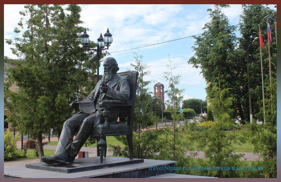 Памятник М.Е. Салтыкову-Щедрину на улице Победы, с видом на площадь К.Маркса.