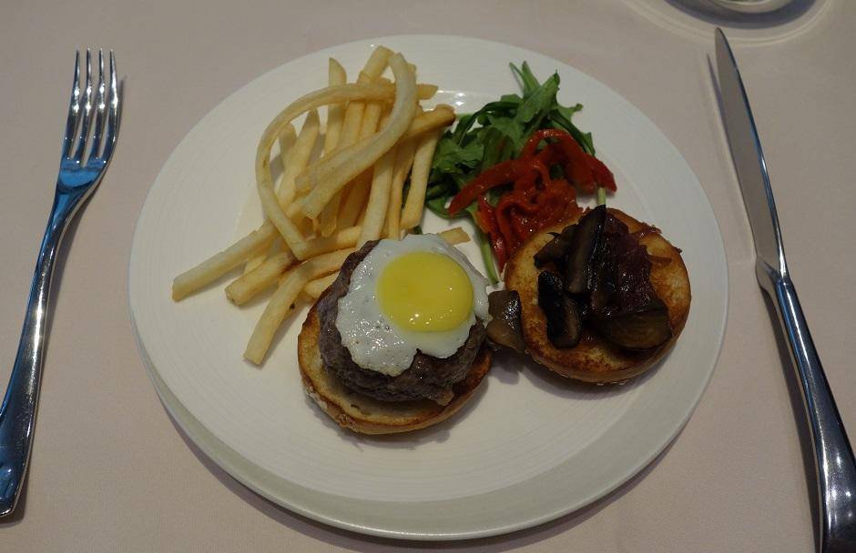 Не то что бы я был принципиально против бургеров в лаунже первого класса. Я люблю бургеры. В конце концов, та же Lufthansa не гнушается кормить своих пассажиров венским шницелем (который, по справедливости, является частью местной культуры, в то время как гамбургер вряд ли имеет отношение к гастрономии Сингапура). Но что это за внешний вид – более унылый, чем в придорожном американском дайнере? Ой-ой.