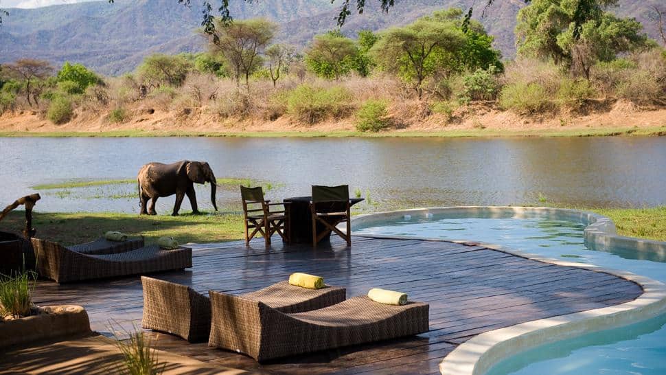 Сам по себе бассейн ничем не примечателен. Более того, маленький резервуар, имеющий причудливую форму головастика, в любом другом месте смотрелся бы просто по-идиотски. Совсем иной оборот дело принимает, когда мы узнаем, что Chongwe River House вместе с одноименным отелем расположен фактически в эпицентре дикой природы Замбии, то есть возле реки, куда приходят на водопой различные животные. Сама же гостиница выполнена в виде бунгала. Выбрав такое место отдыха, вы должны быть готовы к тому, что полюбоваться на ваше купание в бассейне придет самый настоящий слон или жираф. Цивилизация в гармонии с природой. Дико красиво!