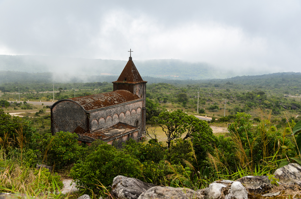 Церковь, построенная в классическом стиле. На стенах остались следы от пуль — наследие режима красных кхмеров