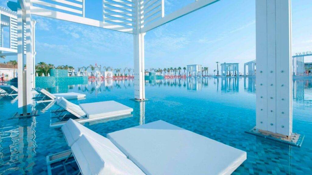 К слову о бассейнах, их тут целых девять — крытых, открытых и с джакузи. Плюс, один из них используется для зрелищных водных представлений.