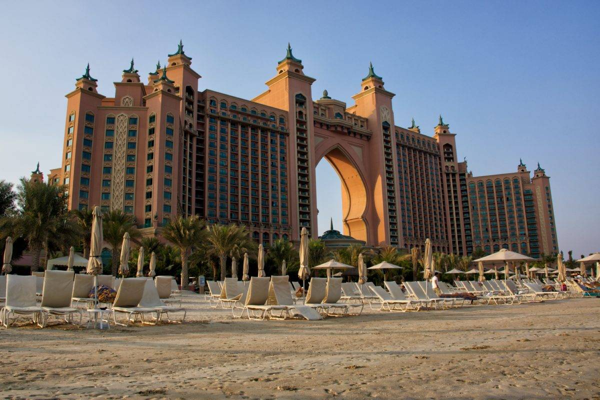 Шикарный отель с великолепной архитектурой. Он считается одним из самых красивых в мире. Гостиничный комплекс расположен в Дубае, на острове, и имеет собственный песчаный пляж. Большинство номеров оформлены в восточном стиле. Из окон открывается красивый вид на залив.