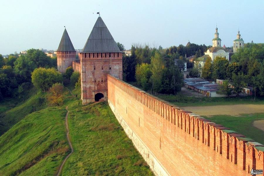 В 1595-1602 года было воздвигнуто монументальное оборонительное сооружение, которое назвали Смоленской крепостной стеной. Произошло это в годы правления Бориса Годунова и Федора Иоанновича. Второе название сооружения «Смоленский Кремль». Длина стены почти 6,5 километров. К сожалению, от целой постройки до наших дней уцелела лишь ее половина. Тем не менее, строение сохраняло свою форму многие века, что характеризует величие и монументальность проектов зодчего Федора Коня.